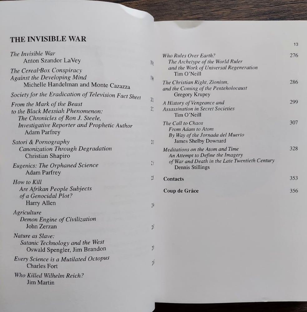 An anthology of the fringe and transgressive edited by the great Adam Parfrey of Feral House. The book, named after Parfrey's fringe cultural scene, defines itself as "an exhaustive tour through the nether regions of today's psychotic brainscape." It contains writings from, among others, anarchist Hakim Bey, journalist Thomas McEvilley, as well as Satanists, criminals, necrophiles, and Parfrey himself. Features Peter Sotos, GG Allin, Fakir Musafar, and more. Required reading.