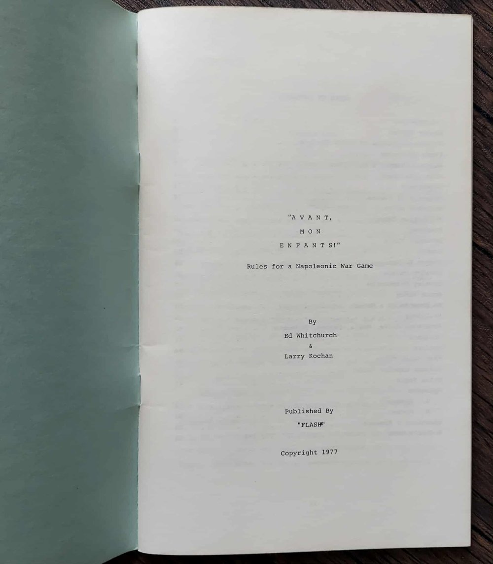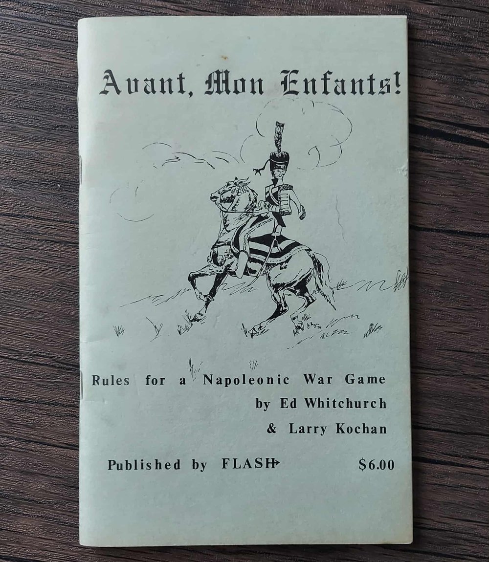Avant, Mon Enfants! Rules for a Napoleonic War Game, by Ed Whitchurch & Larry Kochan. 1977 softcover. 58 pages, very nice condition.