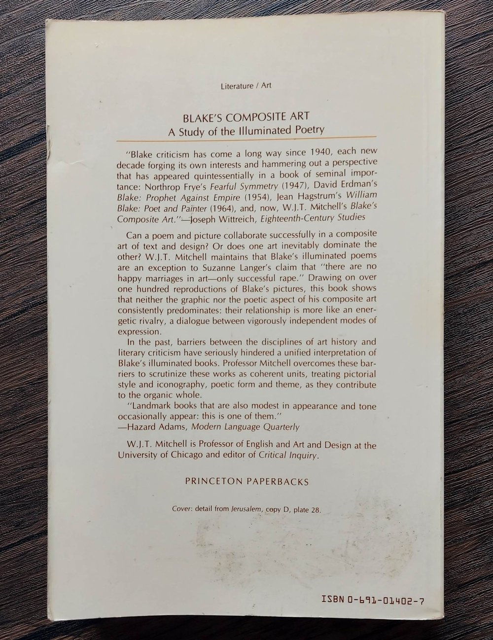 Blake's Composite Art: A Study of the Illuminated Poetry, by W.J.T. Mitchell. 1982 softcover. 312 pages, very nice condition.