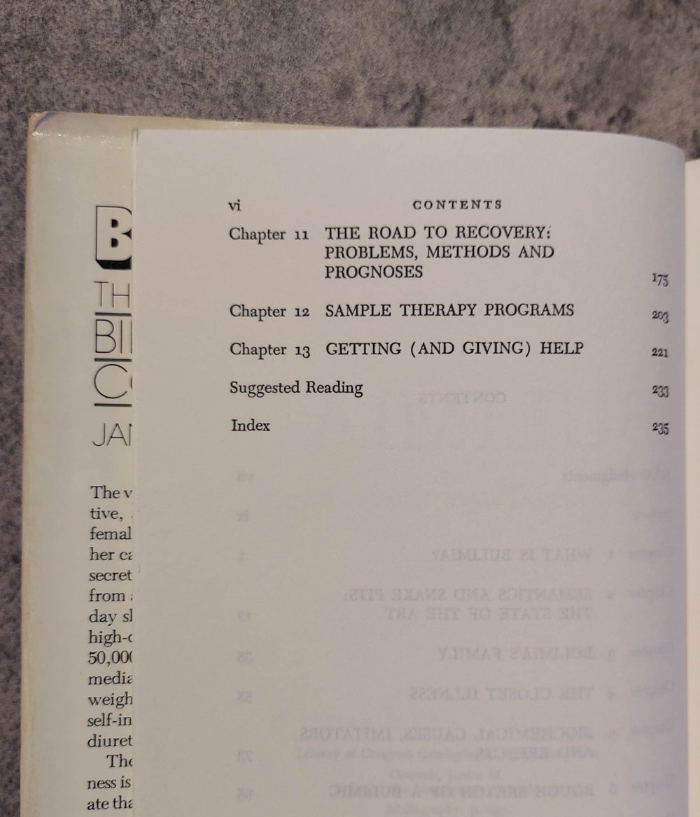 Bulimia: The Binge-Purge Compulsion, by Janice M. Cauwels. 1983 hardcover. 249 pages, nice condition.