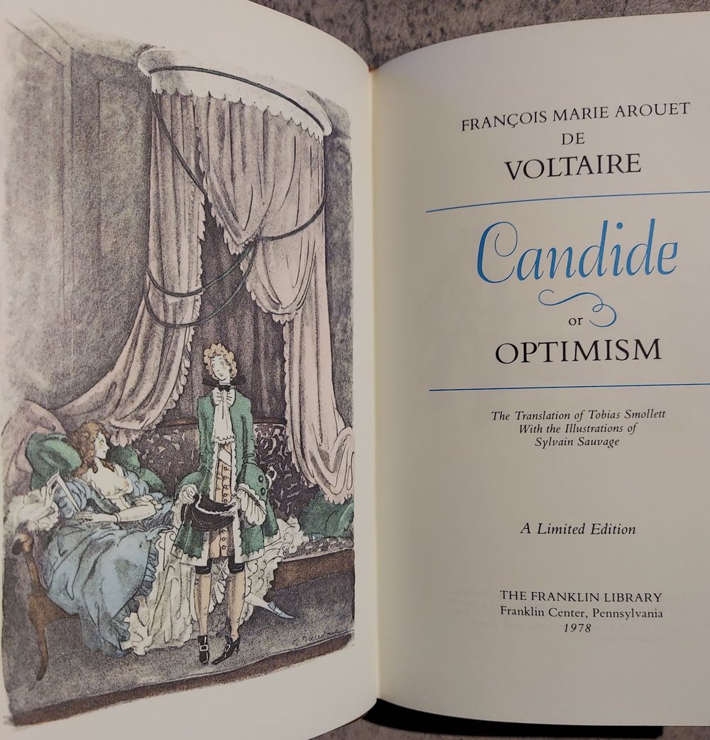 Candide, by Voltaire. 1978 Franklin Library hardcover. 215 pages, very nice condition.