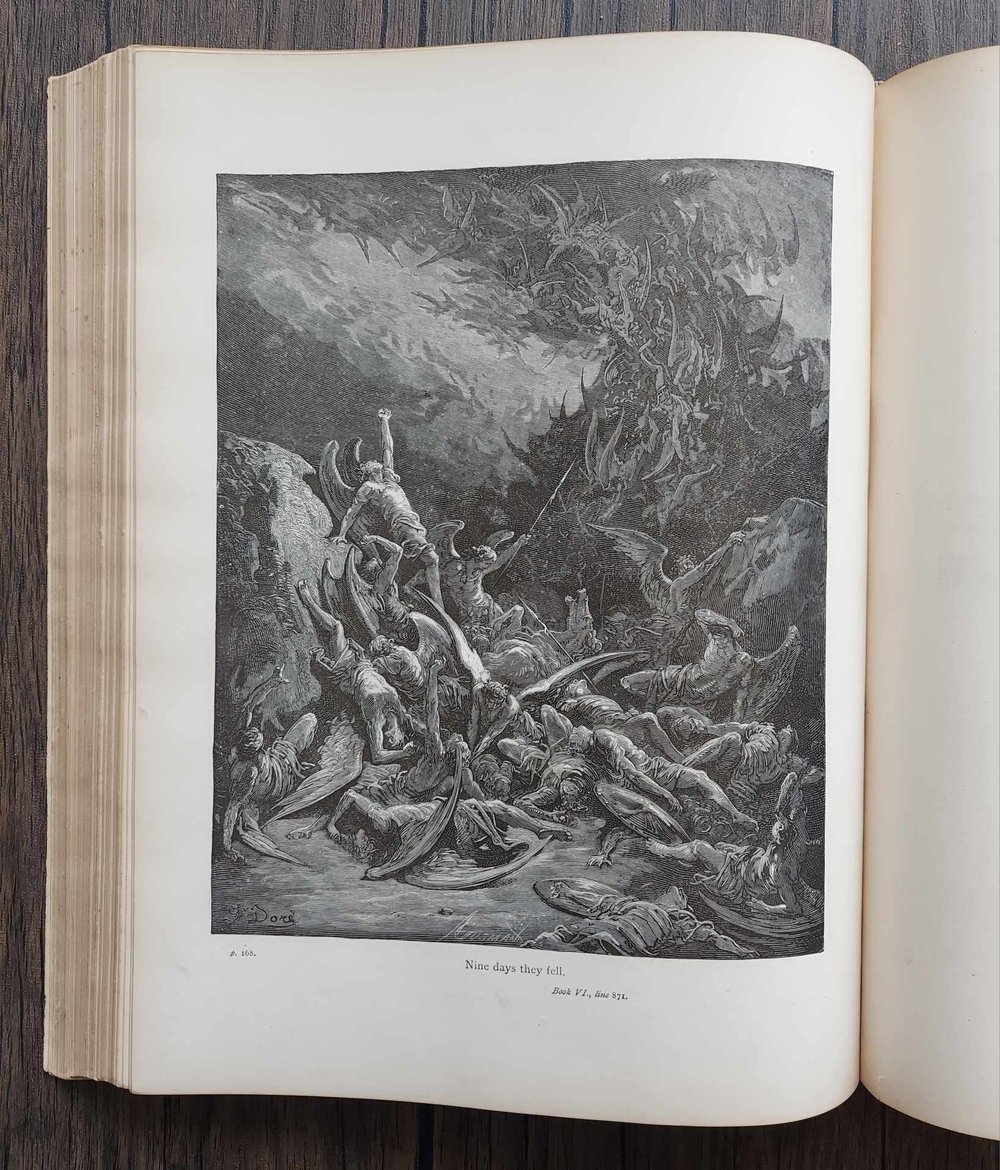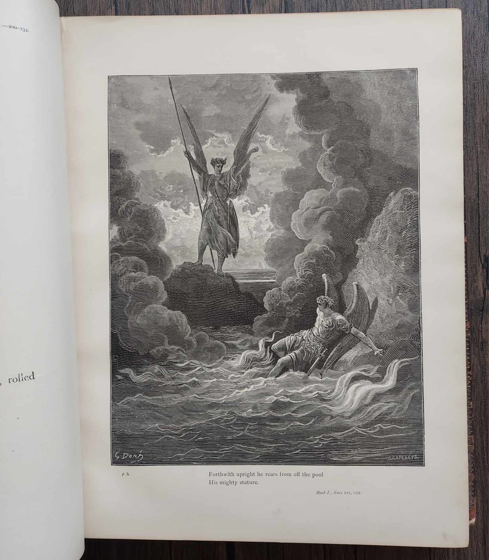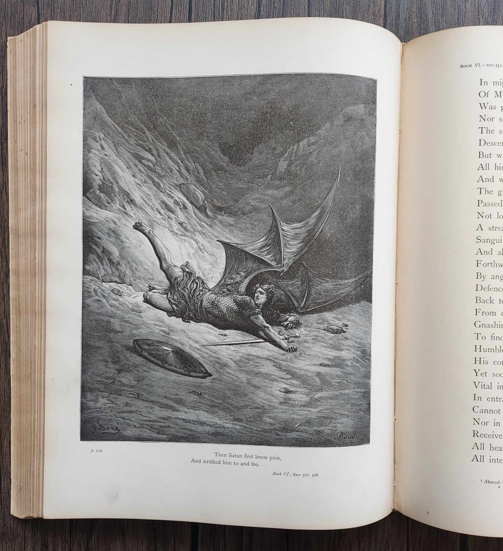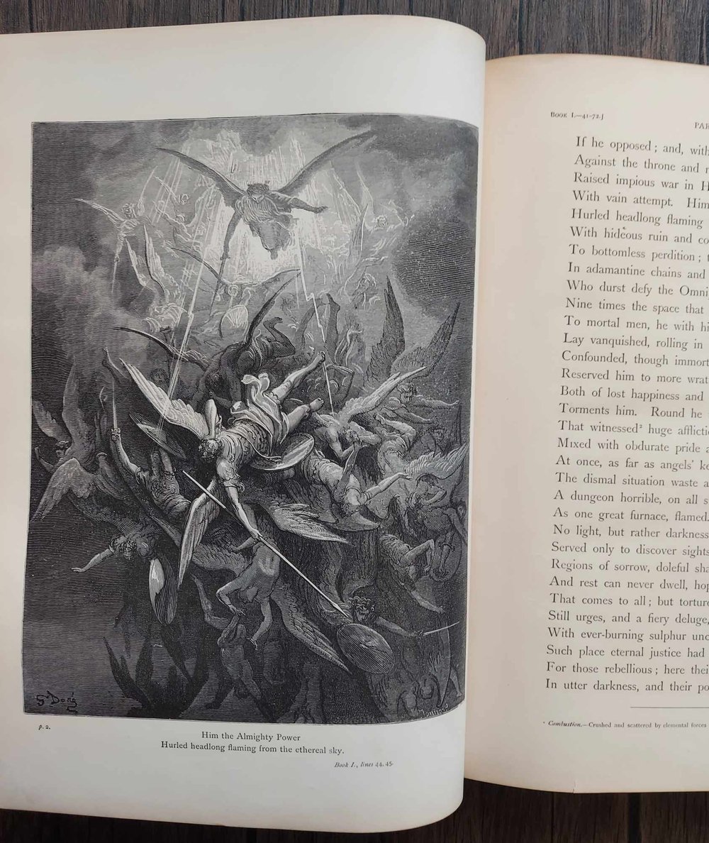 Milton's Paradise Lost - Illustrated by Gustave Dore, edited by Robert Vaughan, D.D.. c.1884 Cassell, Petter, Galpin & Co. hardcover. 329 pages, good condition – internal binding is solid, but both front and back cover are detached (repairable), mild foxing.