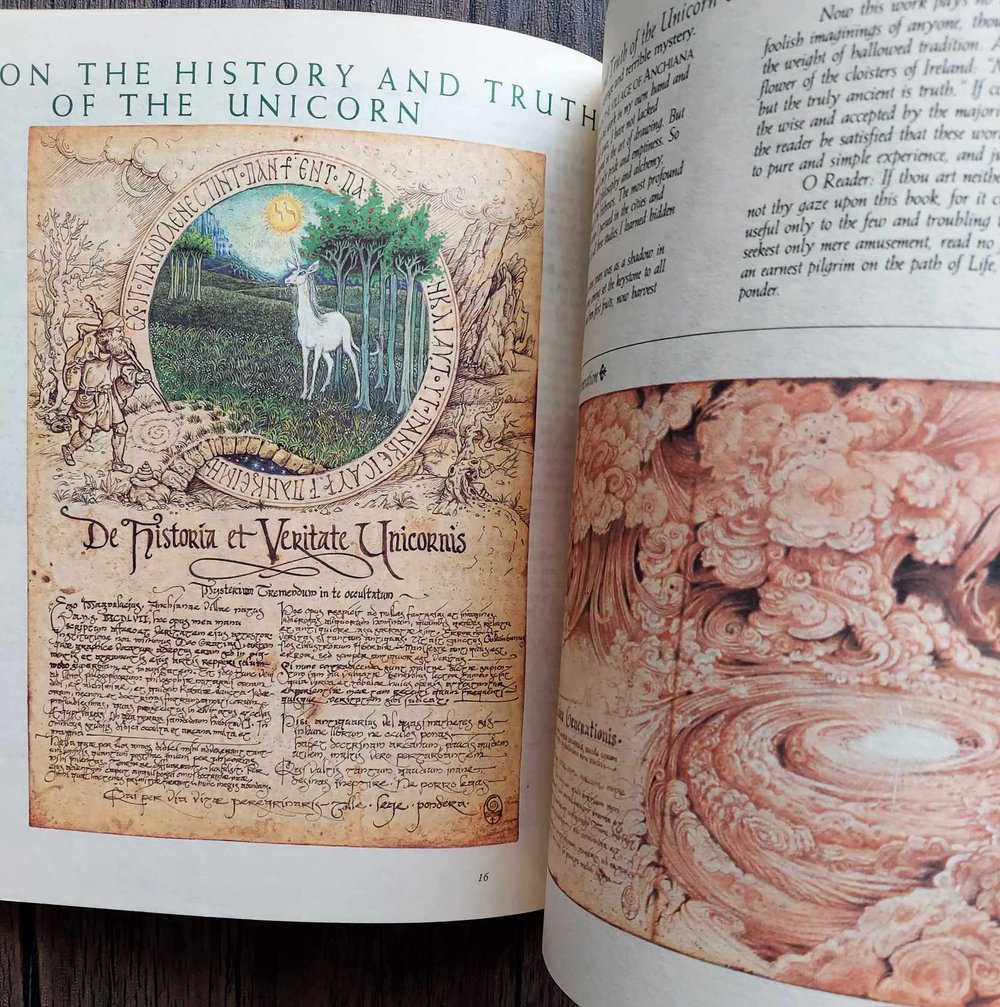 An illuminated manuscript setting forth the fictional fifteenth-century diary of one Magnalucius, who records his first-hand observations of unicorns along with the facts he has learned about their natural history.