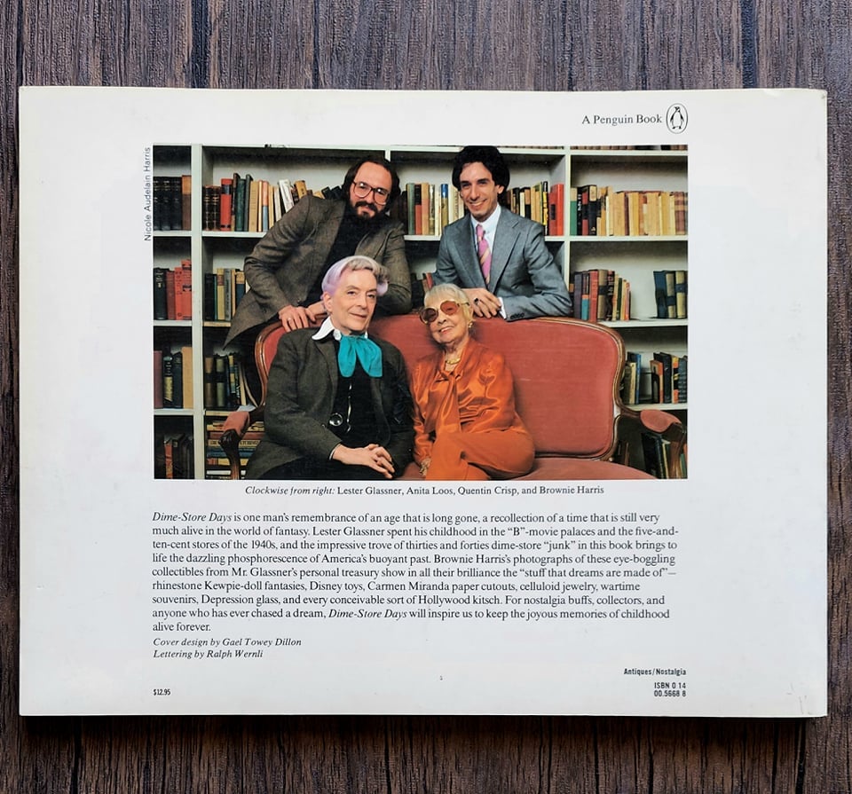 History of dime stores told through photographs of collectibles; Kewpie dolls fantasies and wartime souvenirs. Joyous memories of childhood kept alive from the 1930s through 1950s. A campy trip down memory lane for some and a glimpse of bygone days to those born way after. Forward by Quentin Crisp, and an introduction by Anita Loos. This came from the estate of Adriana Caselotti.