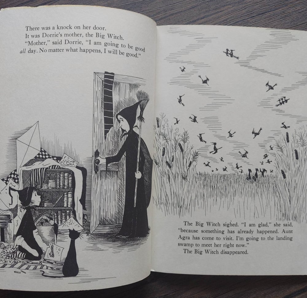 One day the Little Witch, Dorrie, who had a bad habit of meddling with her mother's magic, decided she would be good all day. But, as luck would have it, that was the very day Aunt Agra chose to come to visit. And though Dorrie tried and tried, she just couldn't please Aunt Agra with anything. "Look at her!" Aunt Agra said. "She hasn't touched her sandwich. She hasn't drunk her milk. And look at her face! She's been into your magic again. She's turning green!" But this time Dorrie hadn't meddled with the Big Witch's magic at all. This time Dorrie really felt sick. It was odd, though -- for the minute the genial old Witch Doctor arrived, she began to feel better. And after taking only two of the chocolate peppermints which he prescribed, Dorrie was almost entirely over her bad case of Auntitis. But most astonishing of all was the way the Witch Doctor cured Aunt Agra!