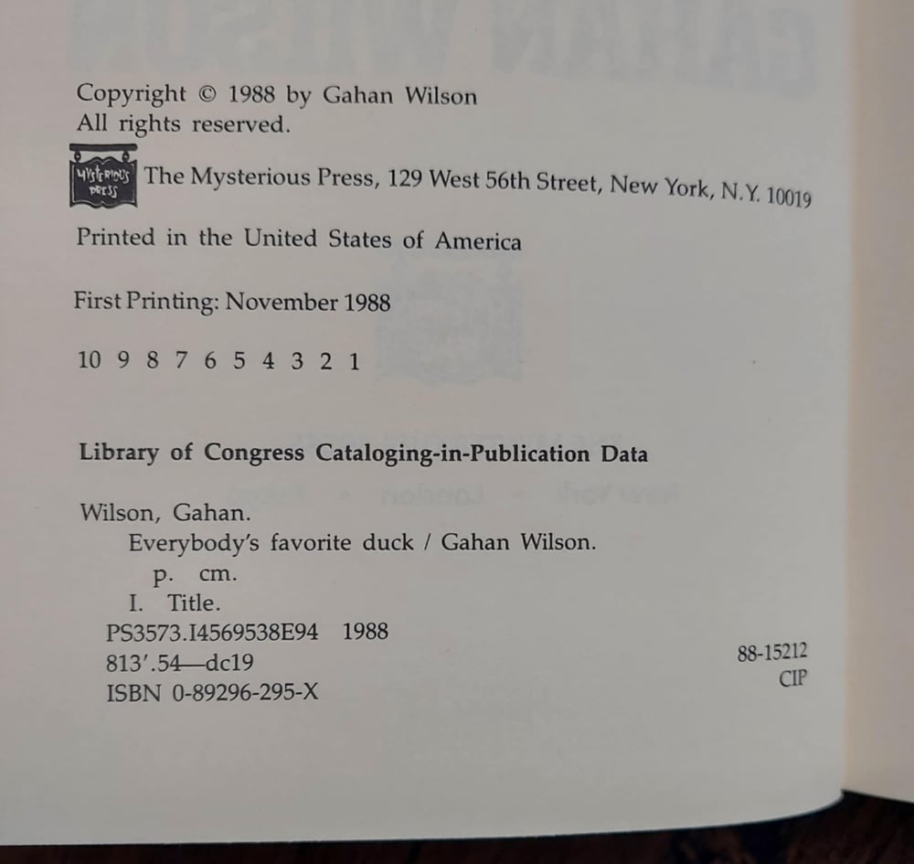 Everybody's Favorite Duck, by Gahan Wilson. 1988 first edition hardcover. 202 pages, very nice condition. SIGNED with sketch.
