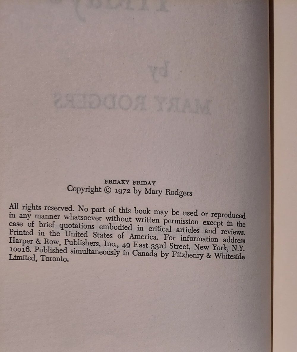Freaky Friday, by Mary Rodgers. 1972 hardcover. 160 pages, good condition.