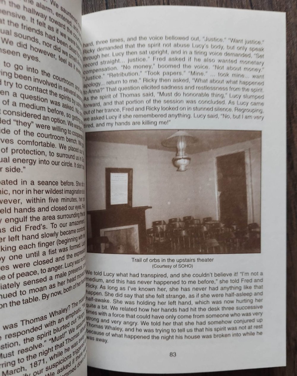 Since then, the house has frequently been cited as haunted, based on strange noises or sights reported by some visitors. In 2005, LIFE magazine called Whaley House "the most haunted house in America." Shortly after the Whaley family moved in, they told the San Diego Union that they heard heavy footsteps in the house which they believed to be the ghost of James "Yankee Jim" Robinson, who had earlier been hanged on the property for stealing a boat. Some visitors have reported seeing apparitions of Thomas Whaley or Anna Whaley. This is an updated version of the Wlodarski’s original book on Whaley House, with an expanded history, new stories, and numerous spirit photographs.