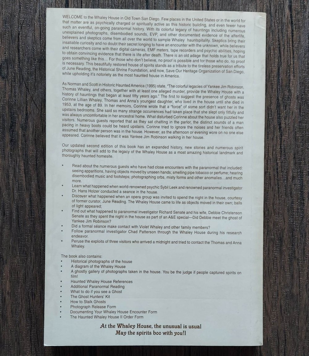 Haunted Whaley House II: A History and Paranormal Guide to America's Most Haunted House in Old Town San Diego, California, by Robert Wlodarski and Anne Wlodarski. 2004 softcover. 204 pages, very nice condition. SIGNED.
