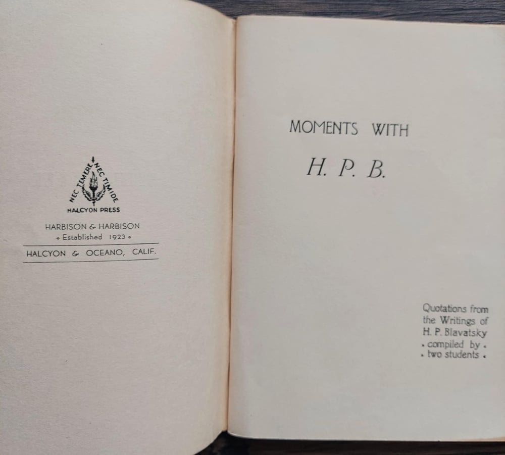 Moments with H.P.B. – Quotations from the Writings of H.P. Blavatsky (complied by two students). 1931 Halcyon Press small