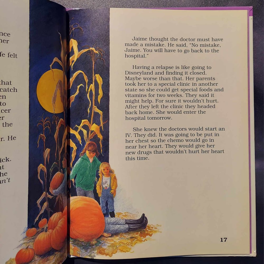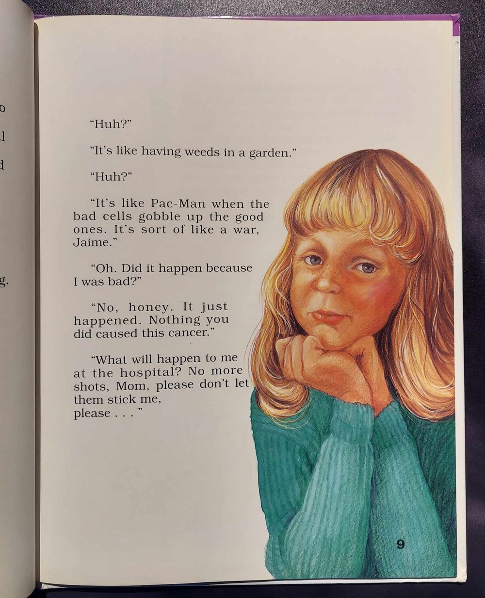 Another great children’s book from Sanford & Evans. This time, the twisted team take on the subject of childhood cancer…and they do not disappoint. We learn that cancer is like Pac-Man, and having a relapse is like going to Disneyland and finding it closed. There are some odd suggestions on how to deal with cancer, and Jaime, the main character, misses her dead friends who didn’t survive. We don’t really find out how everything turns out for her, but she does get a pony…and that’s pretty sweet.
