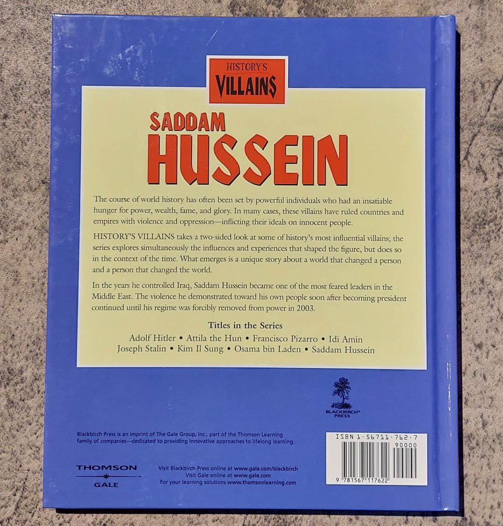History's Villains: Saddam Hussein, by Gail B. Stewart. 2004 hardcover. 112 pages, very nice condition.