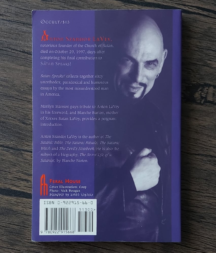 Satan Speaks! by Anton Szandor LaVey. 1998 softcover. 179 pages, nice condition (some cover wear).
