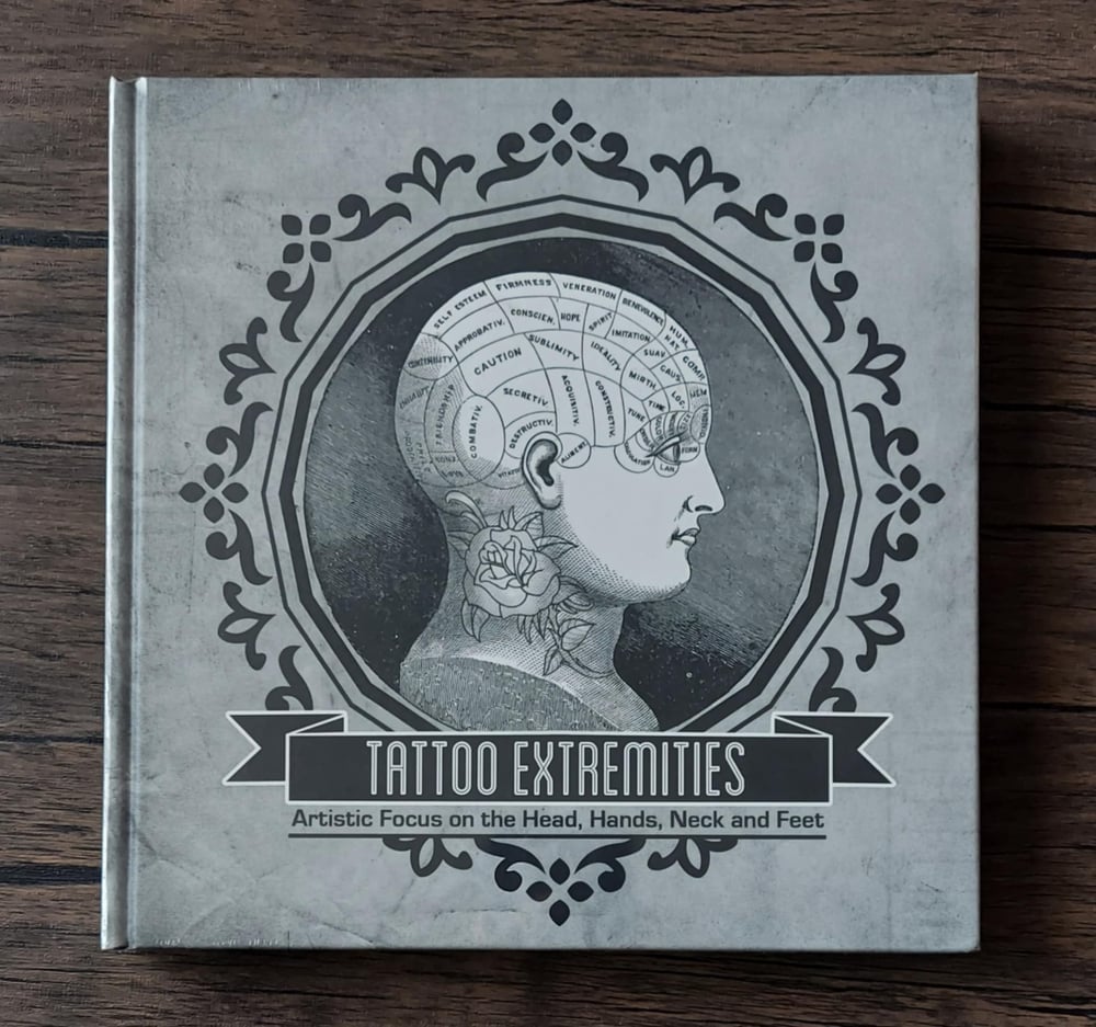 Tattoo Extremities: Artistic Focus on the Head, Hands, Neck and Feet, by Mike DeVries. 2012 hardcover. 240 pages, brand new, still sealed.