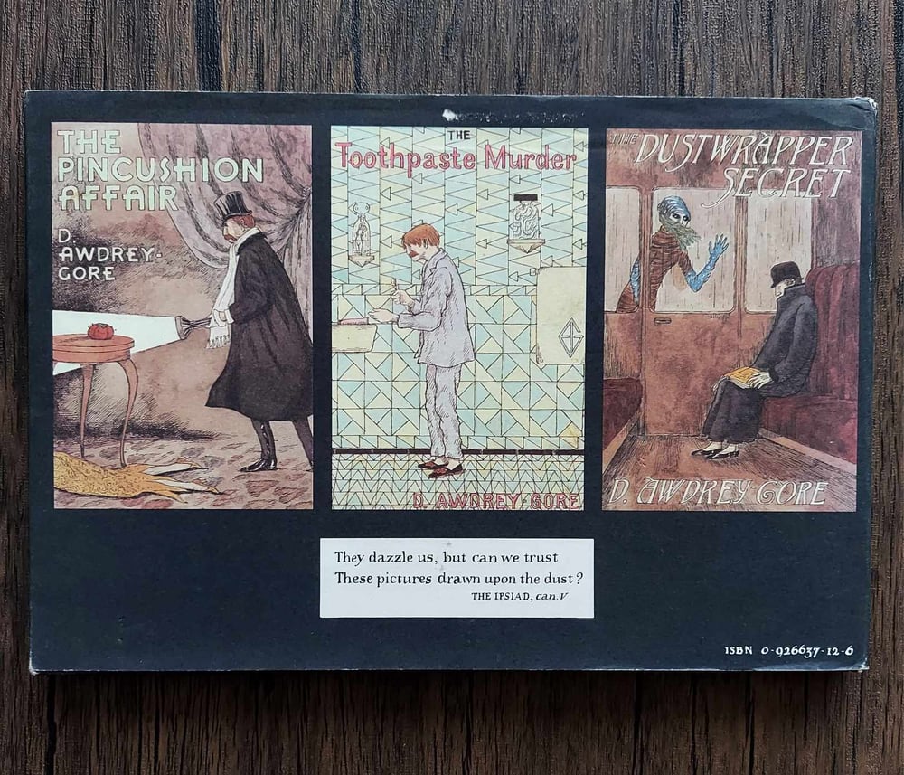 Miss D. Awdrey-Gore, renowned 97-year-old writer of detective stories, is found murdered; then a mysterious hidden packet is discovered. Addressed to her publisher, it contains what appear to be notes and drawings related to a literary work in progress. The contents "in their entirety—though certain things are patently missing" comprise clues about the who, what, when, where, and how of Awdrey-Gore's demise. Or do they? Edward Gorey takes us on a rollicking ride in this merry murder mystery, but whether or not the killer is revealed is open to speculation. As one scrap of paper in the packet states, "The smallest clue may be (or not) / The one to give away the plot."