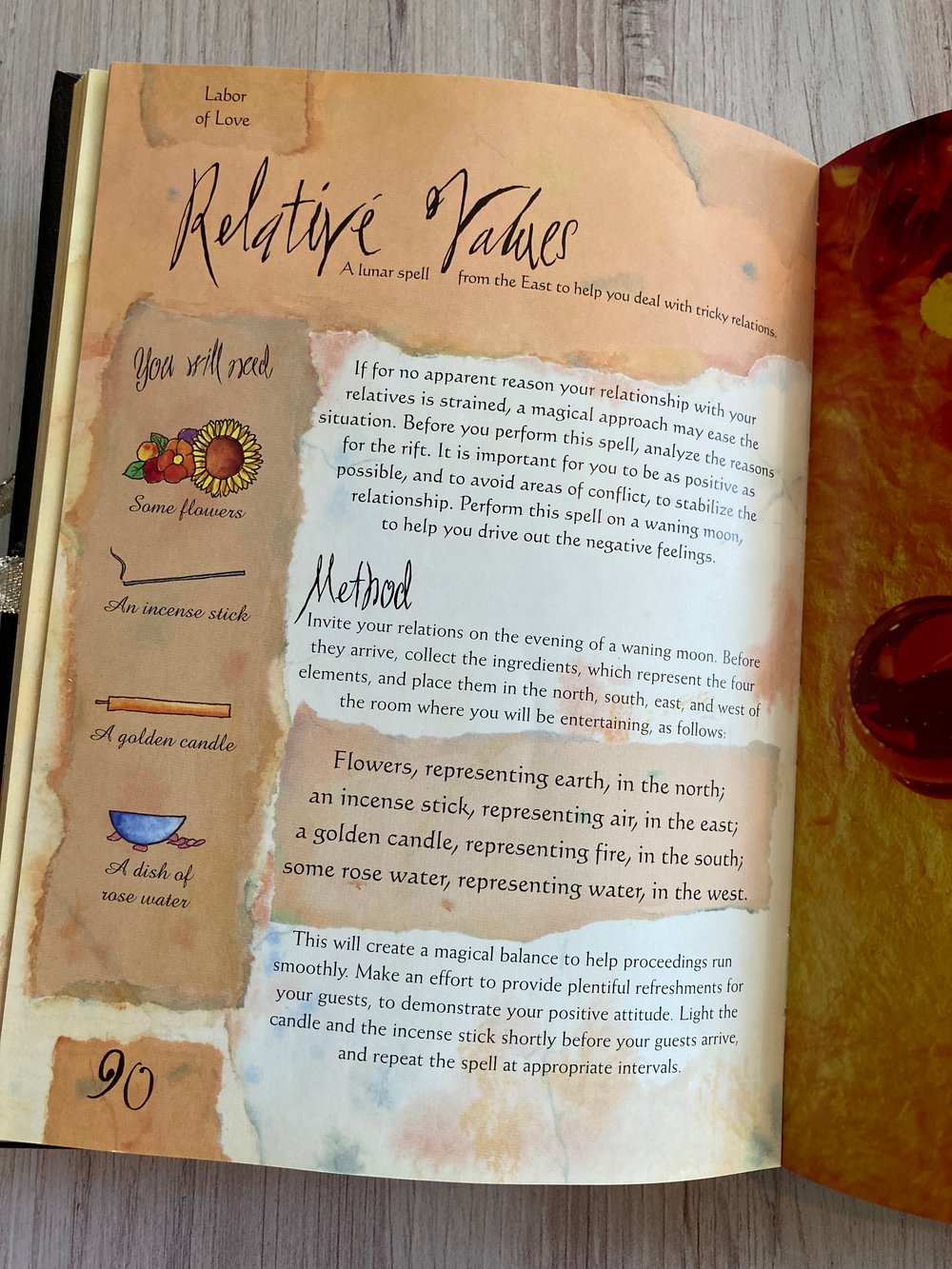 The Book of Spells: Over 40 Secret Recipes to get Your Own Way in Love, Work, and Play, by Nicola de Pulford. 1998 hardcover with ribbon tie. 128 pages, very nice condition, the emergency spells are unsealed.