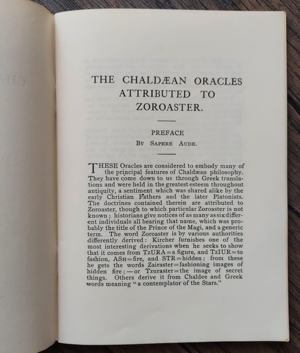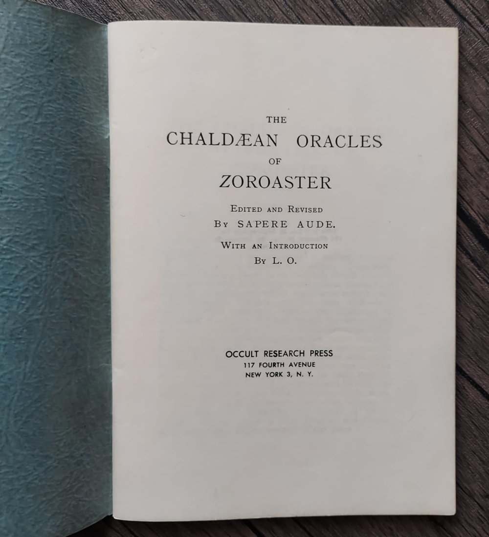 The Chaldean Oracles of Zoroaster, edited & revised by Sapere Aude. c.1950s softcover. 54 pages, very nice condition.