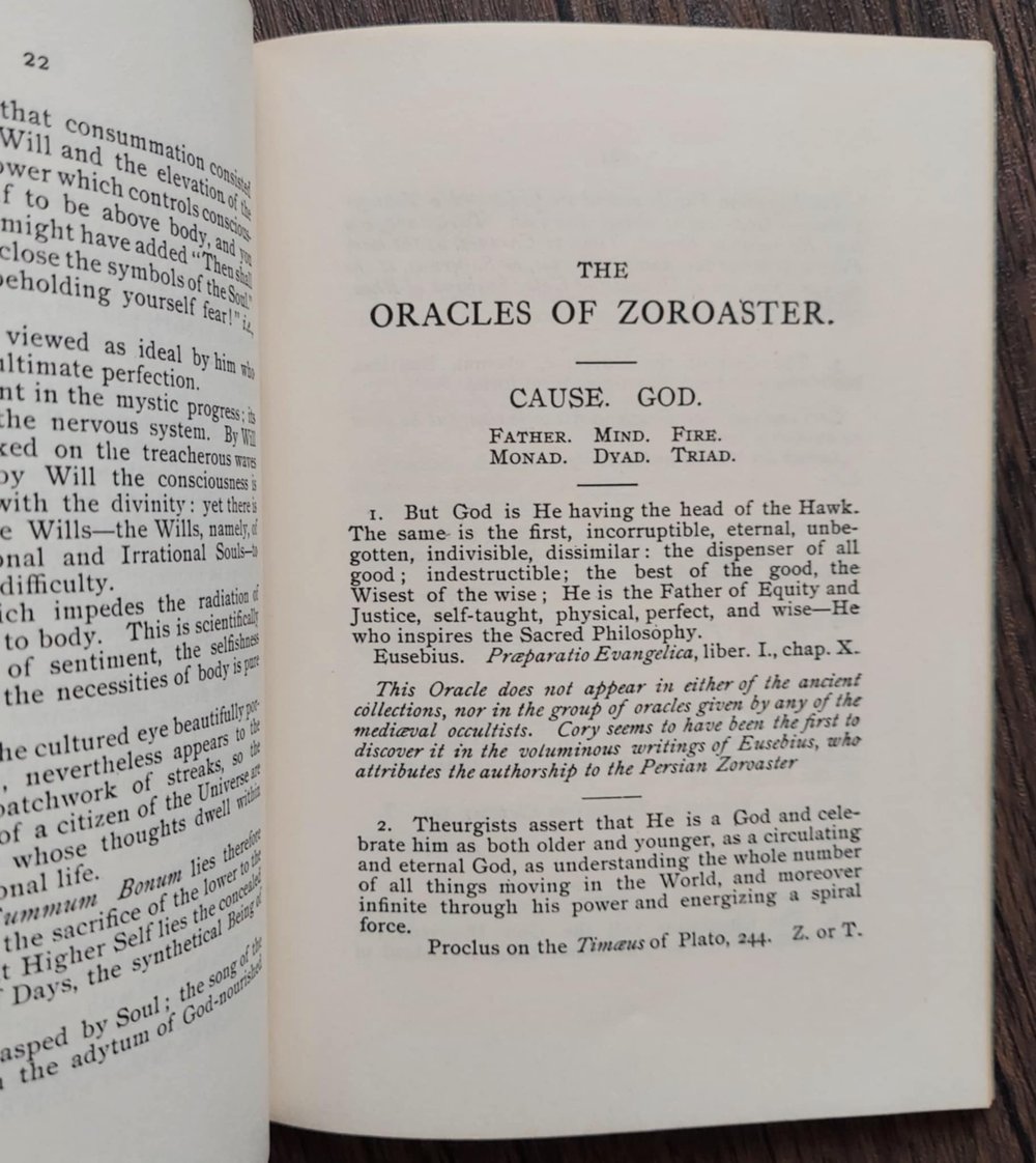 The Chaldean Oracles are a collection of short, manifest-style ancient philosophical and religious texts attributed to Zoroaster, the founder of Zoroastrianism. The Chaldean Oracles of Zoroaster are believed to have originated in the 2nd or 3rd century CE and consist of a series of cryptic verses or aphorisms. These verses were considered sacred and were used in divination and spiritual practices by various ancient philosophers and mystics.