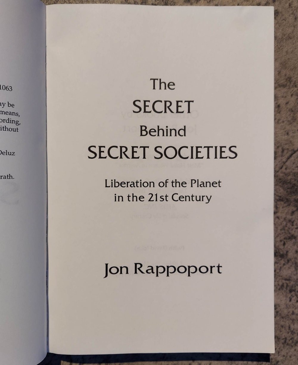 The Secret Behind Secret Societies: Liberation of the Planet in the 21st Century, by Jon Rappoport. 1998 softcover. 410 pages, nice condition (special issue – limited edition).
