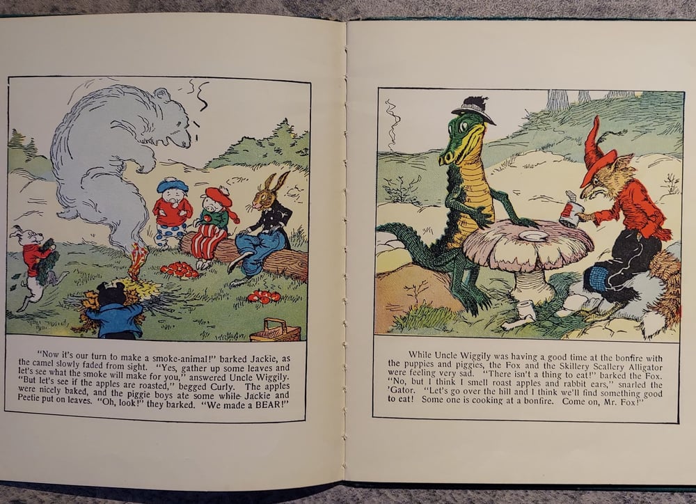 Uncle Wiggily Gets Into Trouble: Uncle Wiggily and the Alligator, or, The Adventure of the Queer Bonfire; Uncle Wiggily’s Friendly Fish; Uncle Wiggily’s Smoke Balloon, by Howard R. Garis. 1931 hardcover. 29 pages, very nice condition.