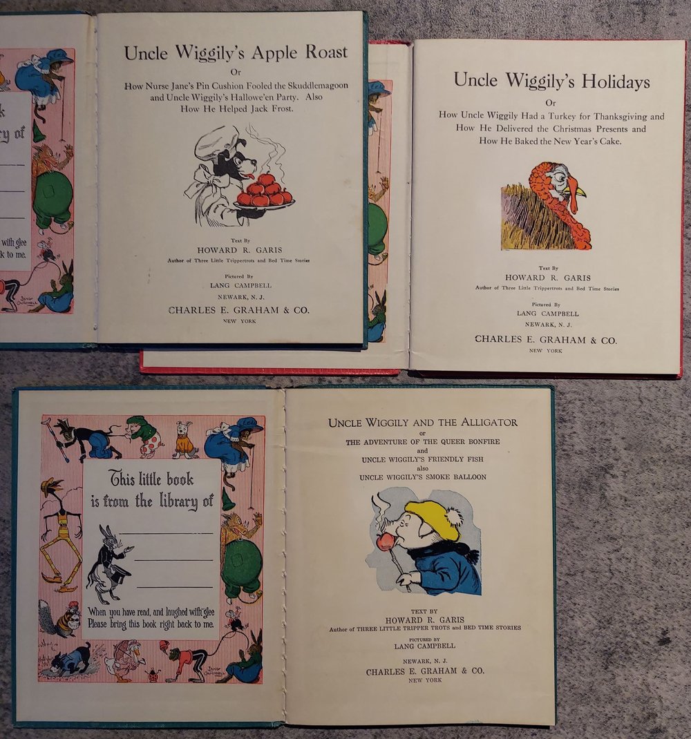 Uncle Wiggily and His Adventures: Uncle Wiggliy’s Apple Roast, or, How Nurse Jane’s Pin cushion Fooles Skuddlemagoon; Uncle Wiggly's Hallowe’en Party; How He Helped Jack Frost, by Howard R. Garis. 1931 hardcover. 29 pages, very nice condition.